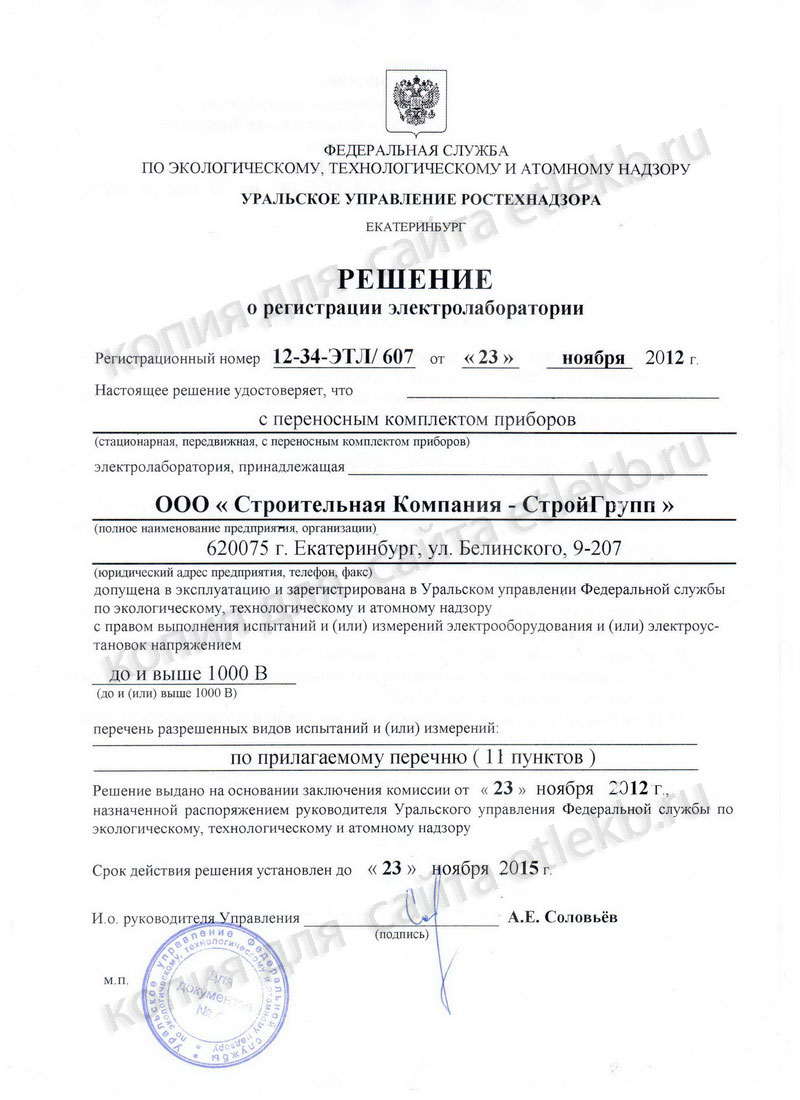 Сертификаты организации: Копия решения о регистрации лаборатории с перечнем разрешенных видов испытаний: Копия Акта допуска СРО с перечнем разрешенных видов работ: |